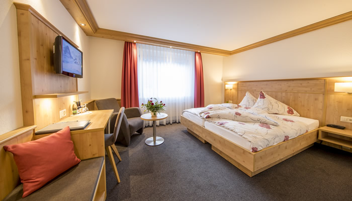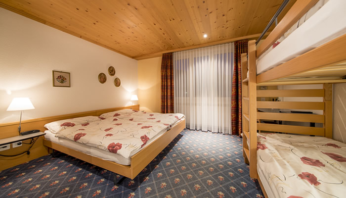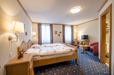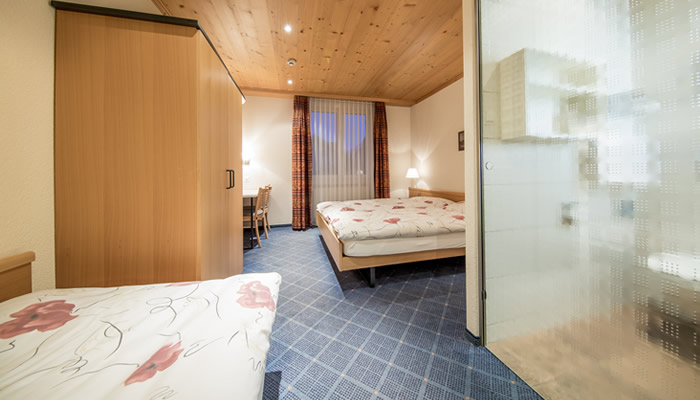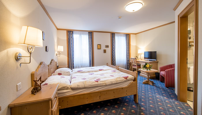 Wir haben auch Dreibettzimmer, Vierbettzimmer und Superiorzimmer mit Verbindungstüre. Bitte zögern Sie nicht und rufen Sie uns an, wir geben gerne die Preise am Telefon bekannt. Sie können auch eine E-Mail schreiben mit der Anzahl Personen und dem Alter der Kinder. Unsere Doppelzimmer Standard mit 18 Quadratmetern wurden im November 2015 total renoviert. Die Möblierung, die Vorhänge, die Beleuchtung und die Bodenbeläge wurden dem trendigen Alpin-Style angepasst.