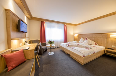 Wir haben auch Dreibettzimmer, Vierbettzimmer und Superiorzimmer mit Verbindungstüre. Bitte zögern Sie nicht und rufen Sie uns an, wir geben gerne die Preise am Telefon bekannt. Sie können auch eine E-Mail schreiben mit der Anzahl Personen und dem Alter der Kinder. Unsere Doppelzimmer Standard mit 18 Quadratmetern wurden im November 2015 total renoviert. Die Möblierung, die Vorhänge, die Beleuchtung und die Bodenbeläge wurden dem trendigen Alpin-Style angepasst.